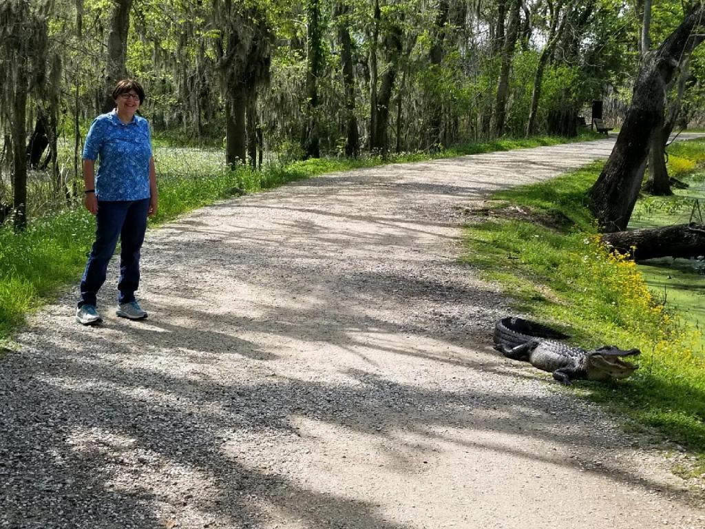 On our last afternoon, I walked to a nature trail around another small lake right next to the camping area and hit the jackpot: a mama alligator and 12 babies in a nest, just under a viewing platform! So, now there are 312 alligators in Brazos Bend.