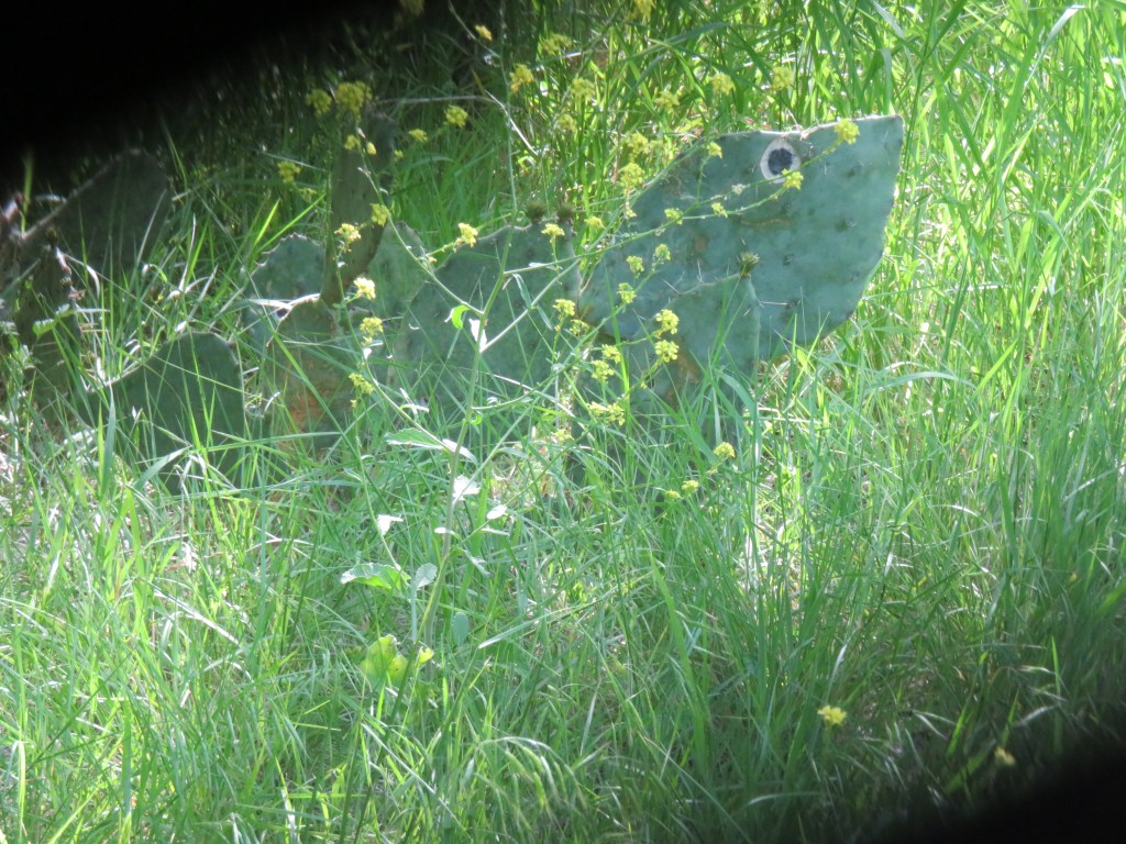 It was a bit of a drive through more wildflowers, buttes, cattle and cactus, but we finally arrived at Colorado Bend State Park. Another long drive through the park took us down to the river. Cal took this picture of Katie and I on his phone. I’m not sure what the big reed is that is in front of our miniscule selves, but I love this picture for the comparison with the towering bluffs on the opposite shore. There didn’t seem to be much here besides the river and a boat launch, at first glance. Katie saw people with small children and beach gear taking off down a trail that paralleled the river. Her curiosity got the better of her, so we left Cal in a lawn chair to watch the boats while we went to investigate. Of course, I love any excuse for a hike.