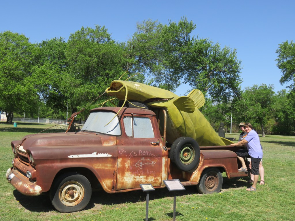 Katie had one more Lampasas trick up her sleeve. Lampasas is also home to the world’s largest spur. I thought maybe at one time it might have had a home in front of a country western dance bar in the middle of Texas, owing to the fish-net stockinged leg up at the top, but no. It was put there in 2017 to encourage tourism for the town. It is 33 feet 10.75 inches tall.