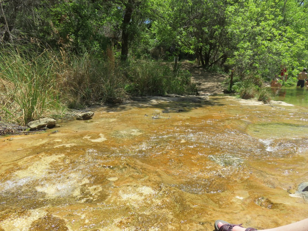 It was hot and Katie wasn’t as enthralled with the natural wonders as I was, but she pressed on. We thought we might find a beach along the river, but finally arrived at something more fun – a spring-fed swimming hole just up from the river. It felt great to dip our tired feet in the waterfall!