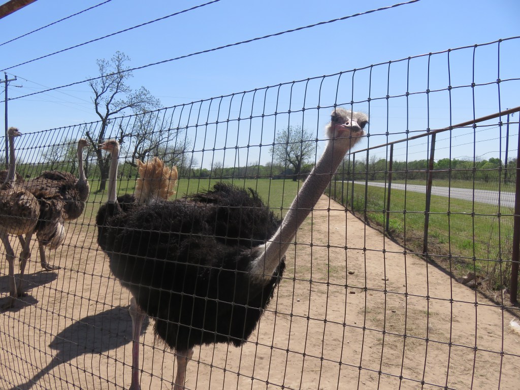 One more stop: we had passed an ostrich farm on the way to the state park, so we thought we’d say hello to the residents behind the fence. They were intensely curious and sashayed right up to us in all their feathery finery. The ostriches were a perfect ending to a beautiful spring day.