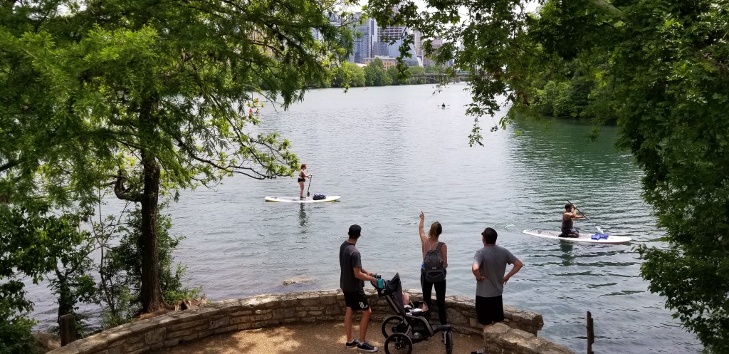Barton Creek was tranquil, and on a Monday morning we there were no other kayakers about. Once we turned into the larger Colorado River, there was more traffic. We paddled all the way under the downtown bridges.