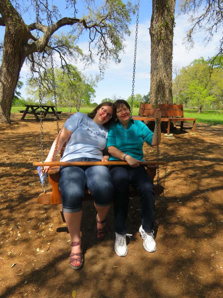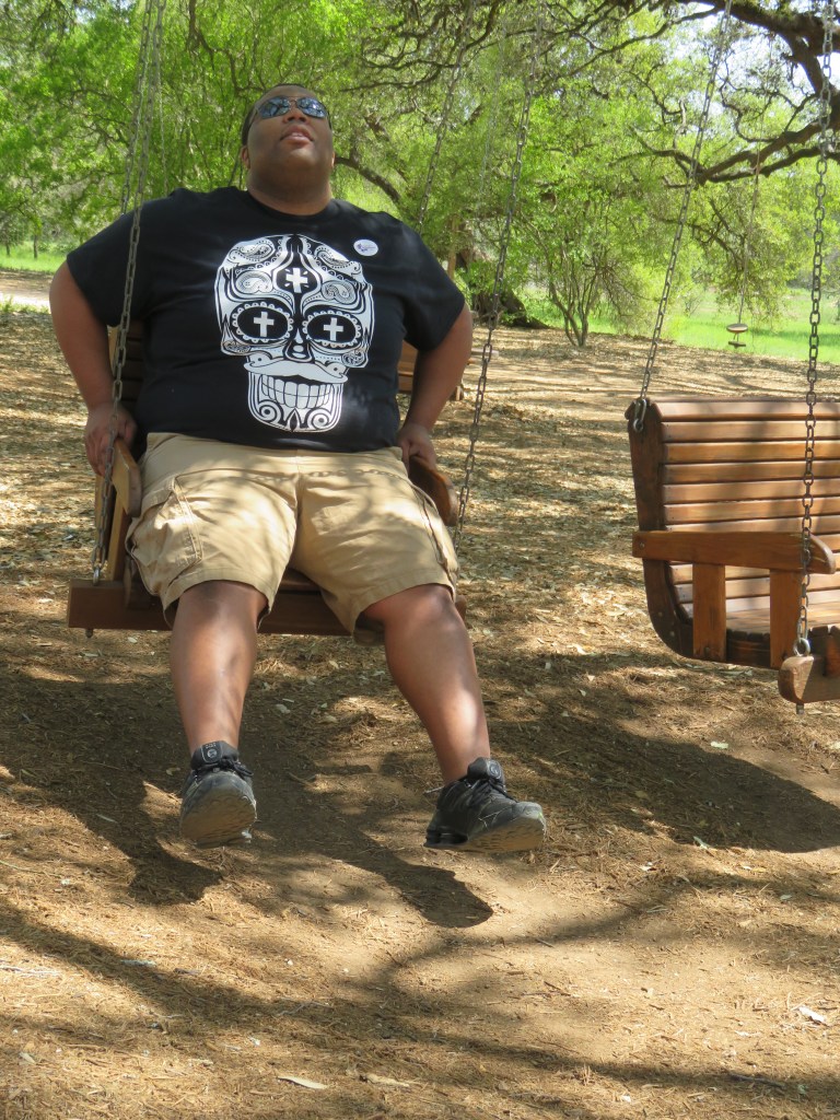 When we were all tired out from all of the various gardens, we were not done. There were also miles of Texas woodland trails to be explored. Back in 2016 my daughter Katie, her boyfriend Larnell, and I tramped on all of them. We came upon an area of live oaks with all sorts of swings – doubles, singles, and even ones for babies. What a great idea! This time around, I made sure Cal and I had some time on one of the swings. The first two pictures below are from 2016; the last, of Cal, from this visit.