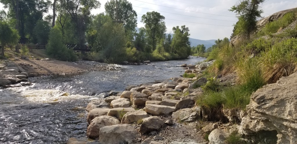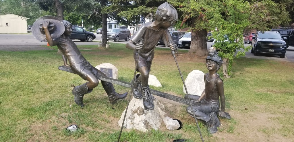 Far from being a sleepy town in the summer, Steamboat Springs was bustling. We had a difficult time making our way down the main street at the dinner hour because of all the traffic. Tourist shops, restaurants, ice cream parlors and breweries were all doing a brisk business. Maybe it was because of all the pent-up isolation from Covid. But also, there is so much to do here. In the picture above, you may see a bridge on the upper left side. That is a biking and walking trail that went all through town alongside the Yampa River. There are trails up in the mountains for hiking as much as anyone would want. There are also fishing and other water sports in the river. The town has a couple of interesting-looking museums, but we didn’t get to those in the short time we were there.