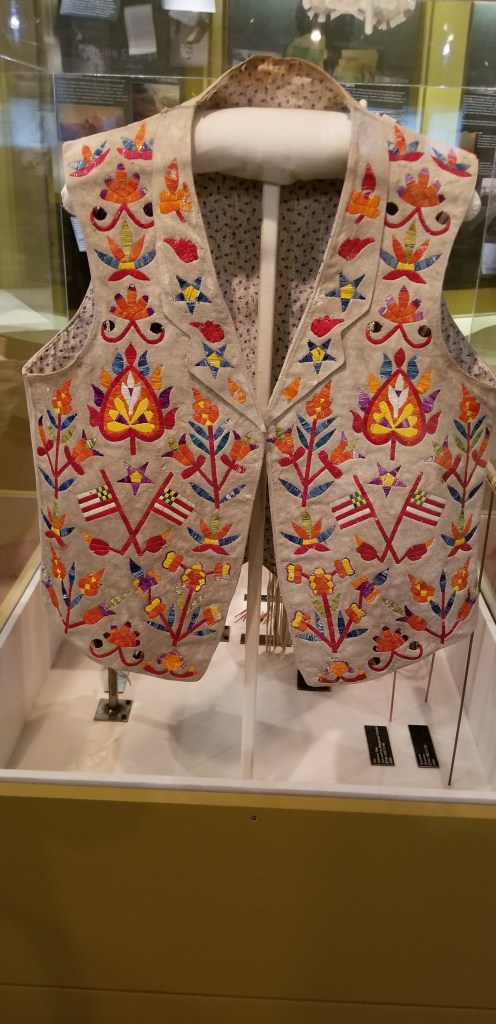 Another exhibit that caught my eye was native embroidery and beading. I like to do embroidery work, so I could appreciate all the detail on this Lakota vest.