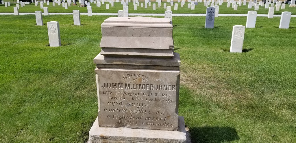 We walked quite a bit through F.E. Warren Air Force Base, which feels more like a living museum than a base. Officers still live in the historic original red brick houses, and any new construction has to also be done in red brick, in the same architectural style. There was a cemetery on base, which was a little unusual, but many graves went back to the air base’s early days. In 1867 the base was constructed as Fort Russell, an Army outpost on the Great Plains. There were a lot of pronghorn antelope lounging about, mostly on the green grass of the officer quarters. I guess that is a lot more cushy than the brown tall grass of the prairie!