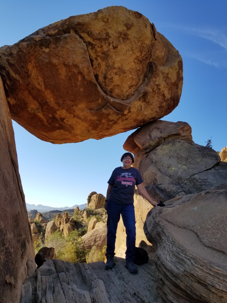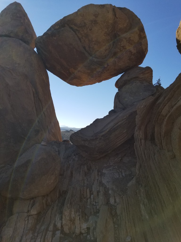 Many people who love the national parks bemoan the fact that sites which were once little-known are being publicized by influencers on social media. They are becoming more crowded and, in some places, becoming literally trampled over by excessive usage. I see this as a double-edge sword. It’s not great that we couldn’t find a parking spot just to take a hike in Rocky Mountain National Park. But necessity has led the Park Service to create a park shuttle service. The overusage in the parks is leading to some pretty creative and innovative ideas. Social media, namely a National Parks Facebook group that I am in, led me to this next spot in Big Bend. Park literature didn’t show a picture of it, only to name the trail. It is this spot: Balanced Rock, on the Grapevine Hills Trail. Once I saw a picture of it, I wanted to find it.