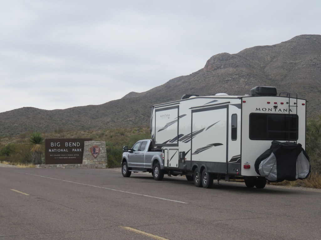 Then Van Horn, Marfa and Alpine, Texas. The towns kept getting smaller and the scenery by the road more beautiful. Marathon, Texas; then 39 miles to the gate of Big Bend; 26 miles from there to Panther Junction in the park; and then, finally, 20 miles more to our RV site in Rio Grande village. It took us 4 days driving an average of 200 miles to arrive. That sign looked pretty good.