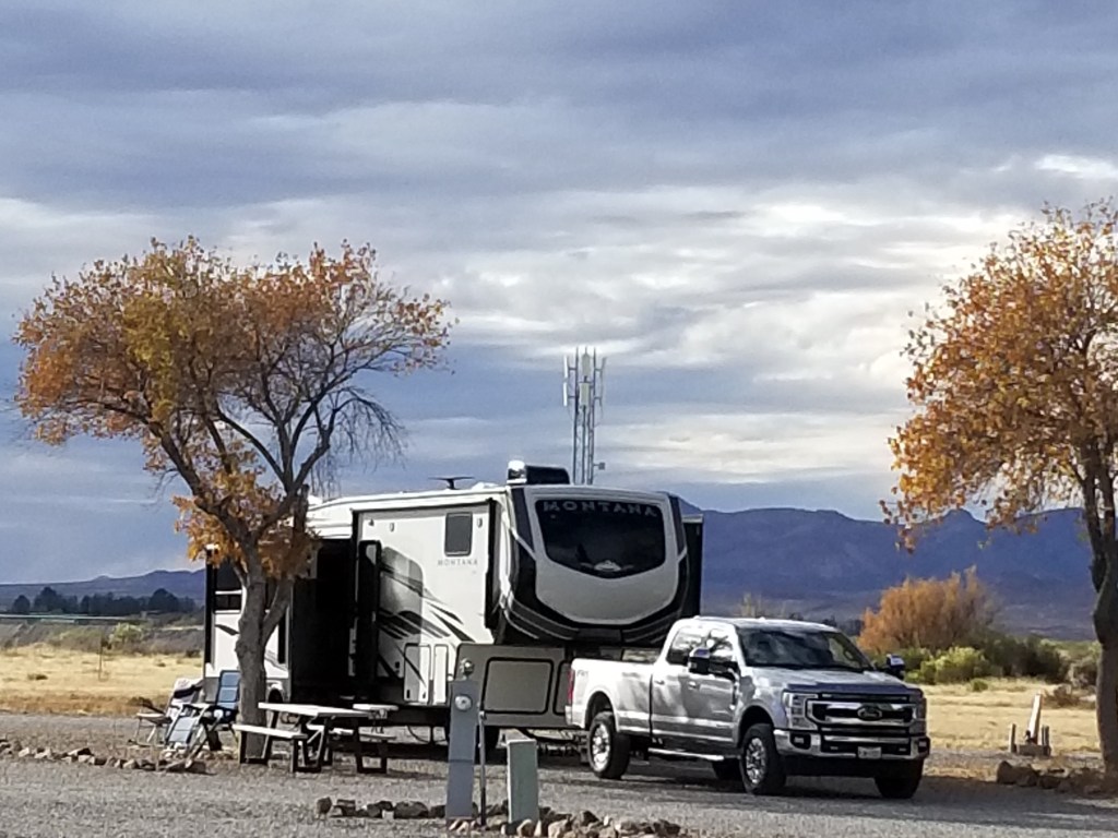 Full-time RVing, fun as it may seem, is still full of the ups and downs of ordinary life. One of the downers for us is the on-going trouble we’ve had with our left front jack erroring out during leveling, and the amount of battery power needed just to get Sam up and down off of Frodo’s (the truck’s) hitch. It got worse with every stop we made. Our stop at the Willcox KOA was supposed to be one overnight, but we canceled some plans and made the decision to stay for five, so that our arrival in Phoenix would be our last until some repairs were made.