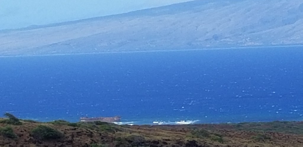 Maybe you can just make out the “shipwreck” on Shipwreck Beach at the bottom of this picture. It’s an abandoned barge.