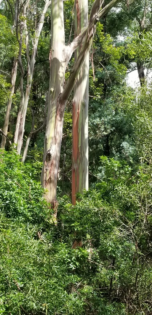 Rainbow Bark Eucalyptus trees, the first that Ben had seen on the island
