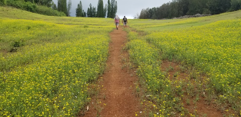Remember that scene at the beginning of the “Sound of Music” where Maria twirled and burst out with “The hills are alive!”? That’s exactly what this little meadow full of wildflowers felt like. We had been hiking through the woods, and then came upon this. In actuality, it is the old golf course for the Four Seasons. We could see golf balls embedded in the path. Larry Ellison has already transformed part of it into two different ropes courses. I think this one looks like an absolute blast: