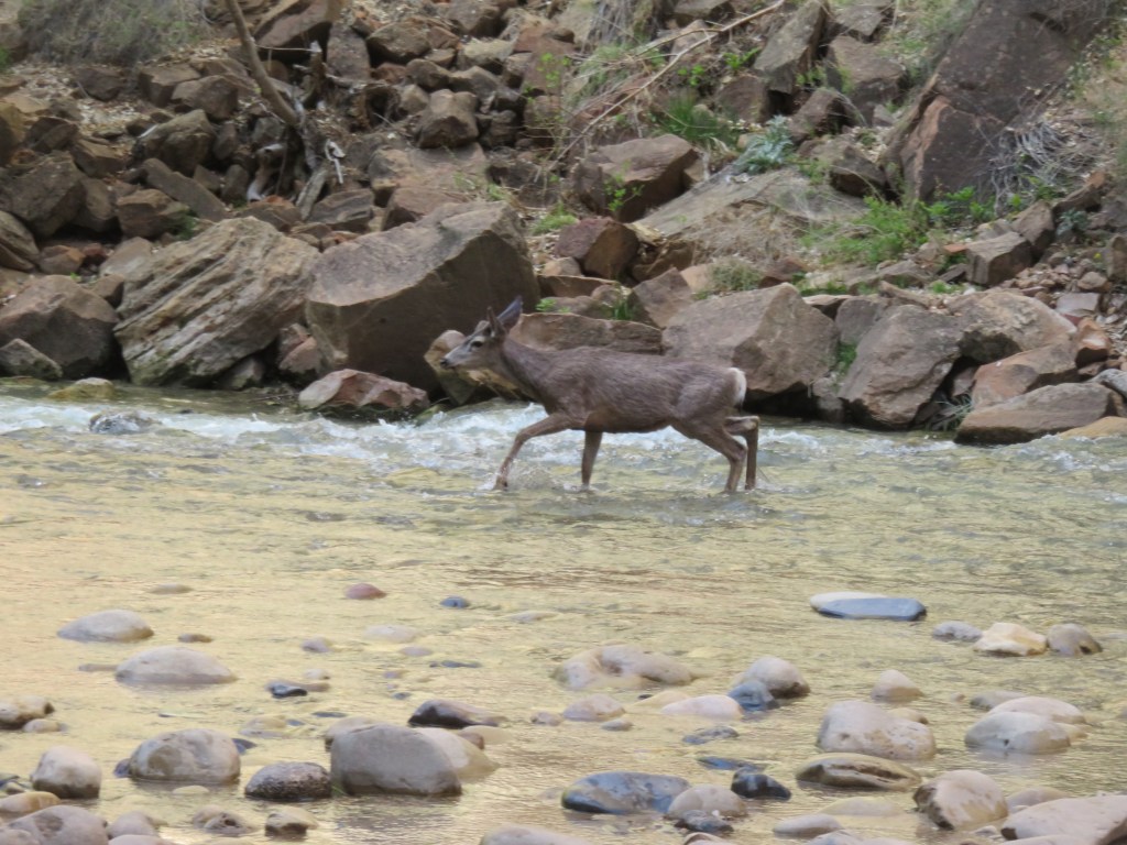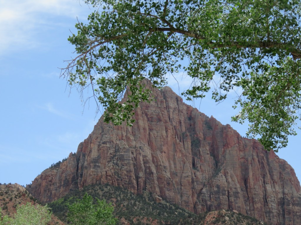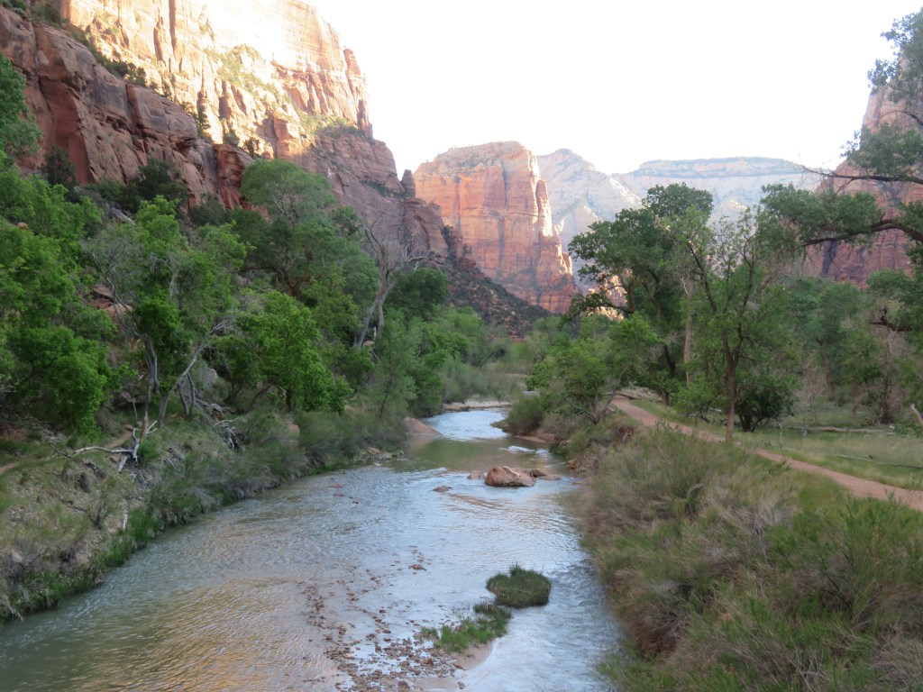 We were always craning our necks to view the immense sandstone rocks overhead, beautiful in their various colors of tan, ochre, and white. The Virgin River carved this park millions of years ago.