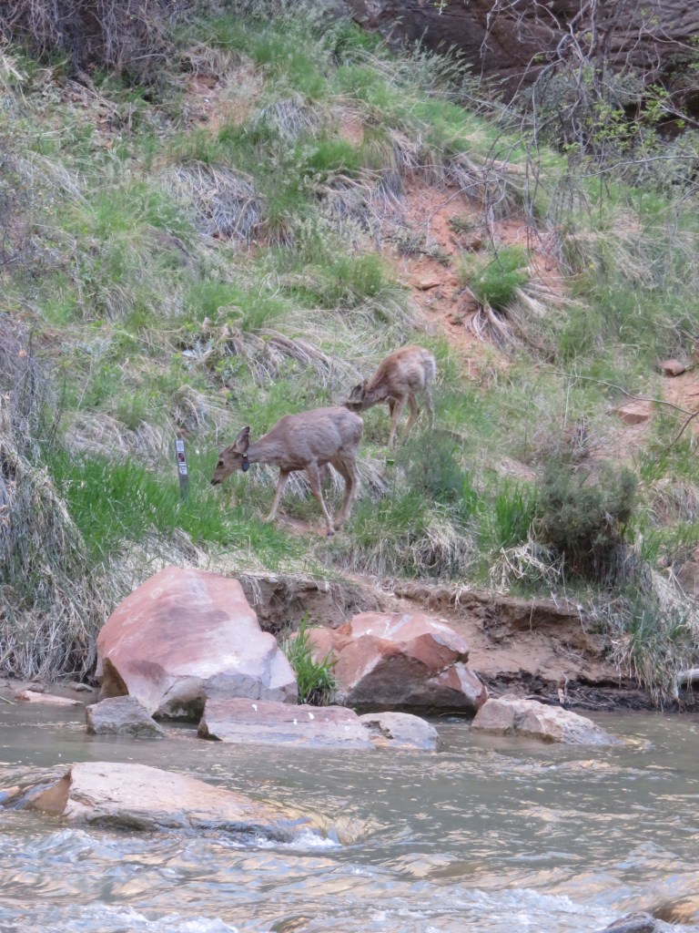 Back on the shuttle bus, Zion Lodge was a great place to stop for snacks and to supplement the lunch we had packed. As the day wore on, the shuttles became full, but never so bad that we had to wait in a long line for them. We agreed that the last day of April was a very good day for a visit.