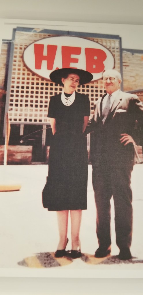 It is explained at the historical museum here. The H.E. Butt family donated the building housing the museum to the city back in 1967. Howard Edward Butt took over management of the family grocery store from his mother, Florence T. Butt, in 1919. She founded it and ran it for fourteen years, so why isn’t the store named for her? Well, that’s a mystery. Howard and his wife are in this somewhat grainy picture.