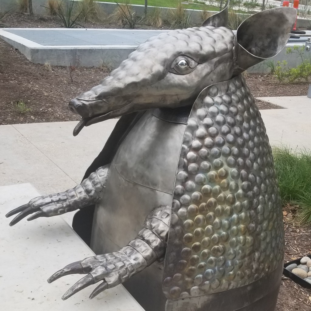 At her suggestion, we started the day out at the Kerby Lane restaurant’s original downtown location for a delicious breakfast. Afterward, there was time before the Bullock opened to stroll along the new walkway to the state capitol building. It is lined with sculptures of animals indigenous to Texas, which is where I saw the armadillo that you see at the top.
