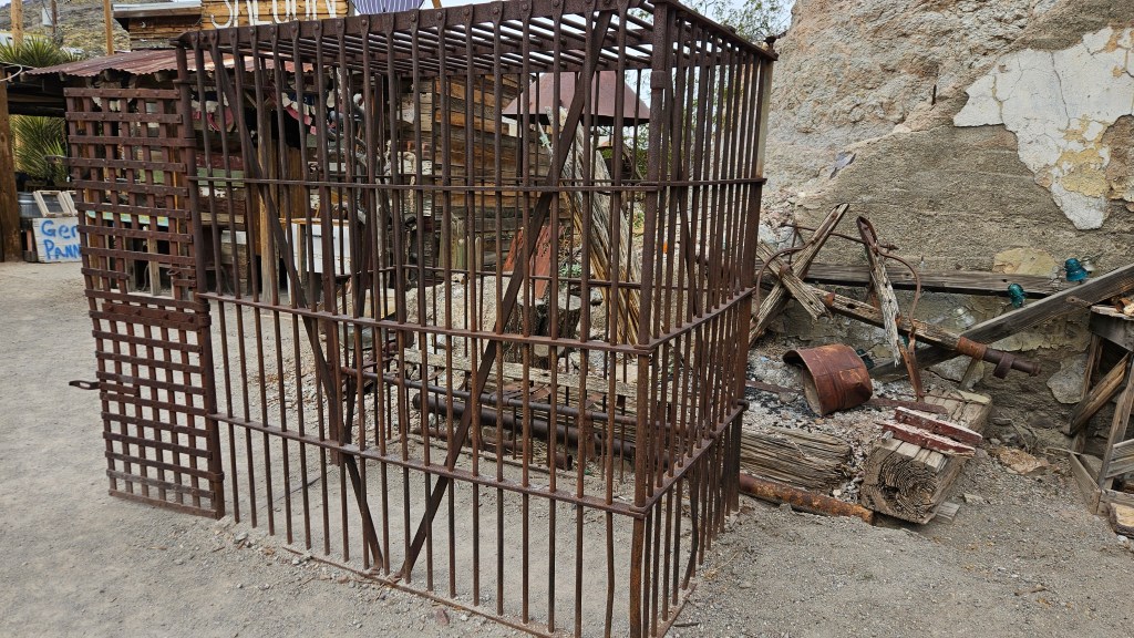 If you visit Oatman, you may want to not miss the jail museum. The jail has been preserved from Oatman’s heyday and most of it is original. I didn’t even know about it until we came home and came across it when looking up information about Carol Lombard and Clark Gable’s wedding. If we are ever back in the area, that will be a good excuse to visit the burros again. Maybe the Oatman hotel will have “Greek Shepherd’s Pie” on the menu!