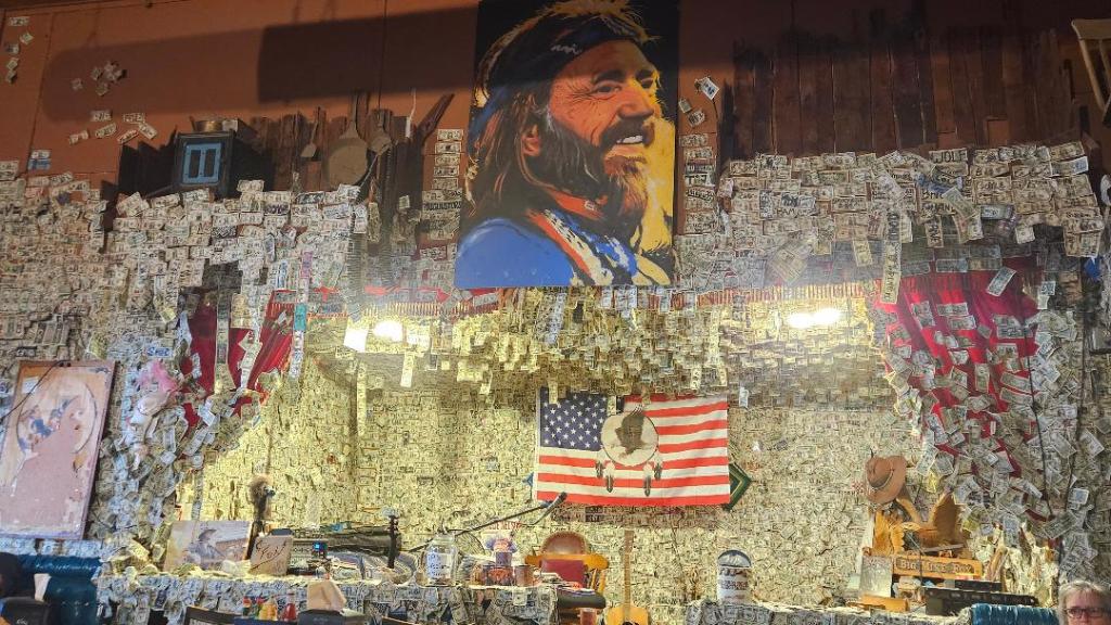 The Oatman Hotel survived the fire of 1912. Built in 1902, it is the county’s oldest two-story adobe structure. We went in for lunch. The walls were plastered with dollar bills and, as I waited for my food, I gazed at a large picture of Willie (in his younger days) on the stage.
