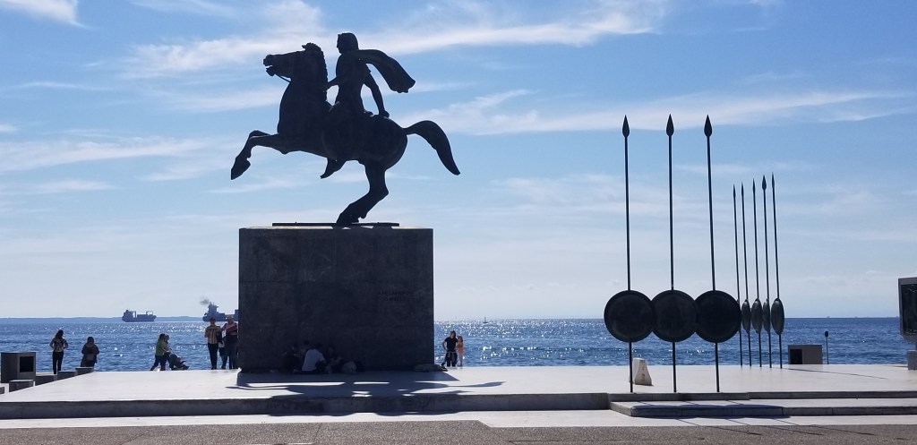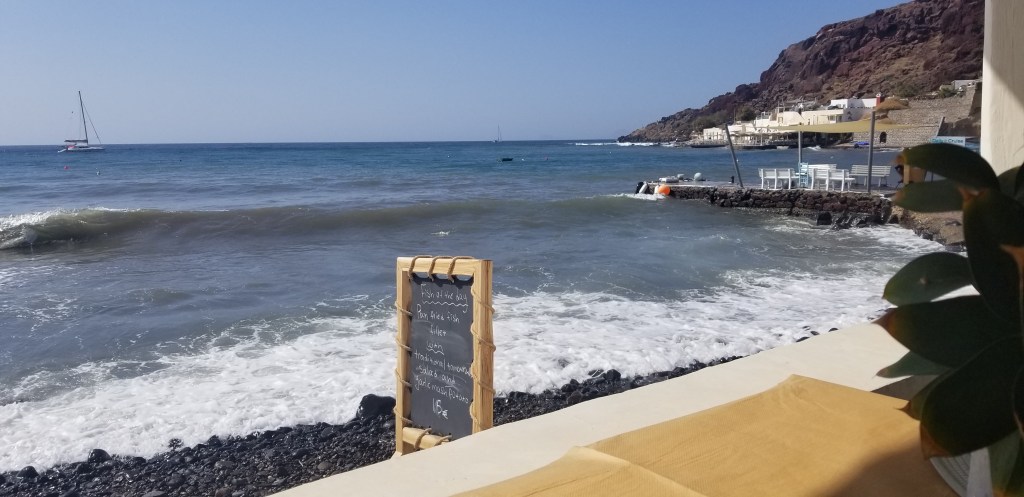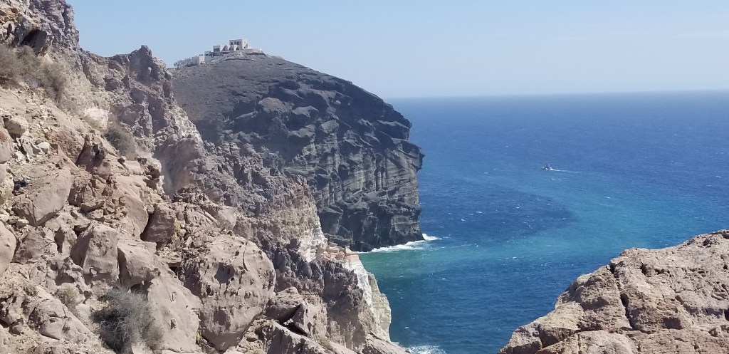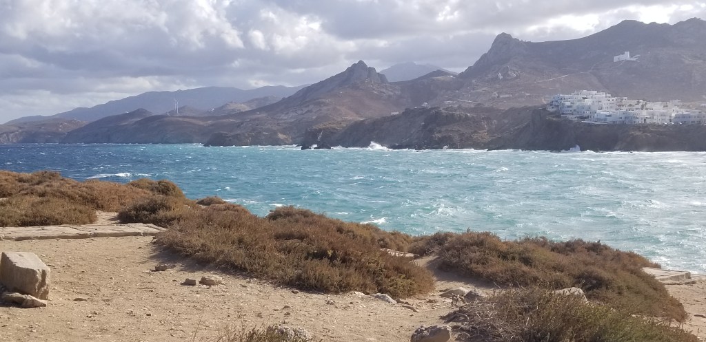We rode north through the mountains for a long while, finally finding the north side of the island and the sea at Apollonas. I suspect that in the summer time this would have been a beach visit because we were given a lot of time to do not much. It was dubbed a “coffee stop”. There were a handful of gift shops and some places to eat. It was beautiful there, though.