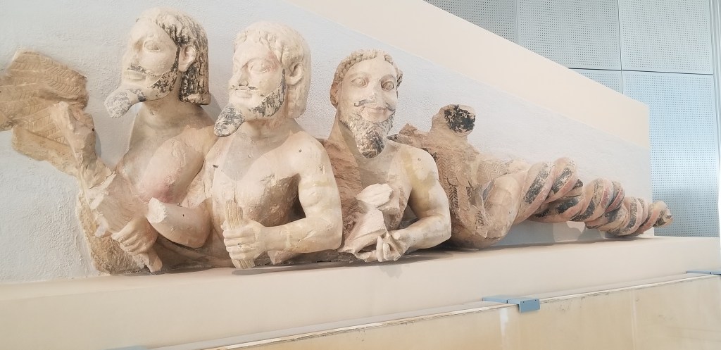 Our first stop was to see Demeter’s temple, built in 530 BC. It’s quite a story: as Greek civilization declined, a Byzantine church was built over the old temple. Arabic pirates destroyed the church in the sixth century AD, but it was rebuilt in 1977. After the discovery of the Greek temple, an archaeological excavation began, and the temple was rebuilt.