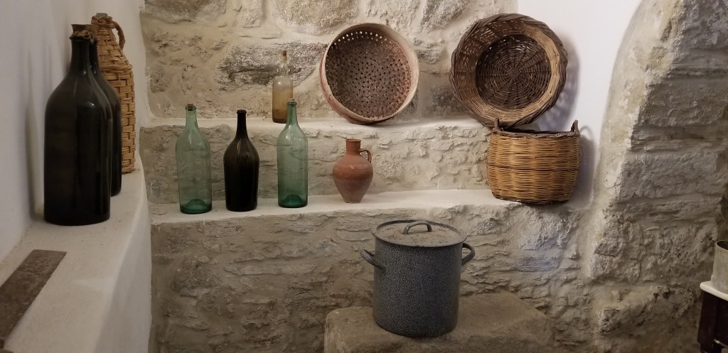 Onward, then, to a 150-year-old olive press. Our guide demonstrated its use and the making of olive oil in the old days.