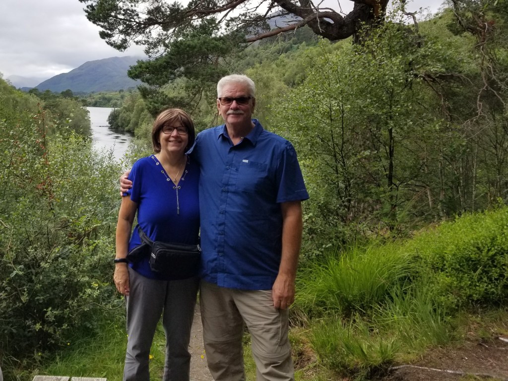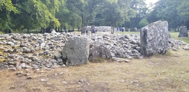 I haven’t seen the series but I did read the first two books, enough to know about Claire touching a stone which turns out to be a time portal. She travels from 1945 back to 1743. This was filmed at Clava Cairns. I got caught up in the hype enough to have Cal take this picture of me touching the stone there. I did not find myself transported back to another era.