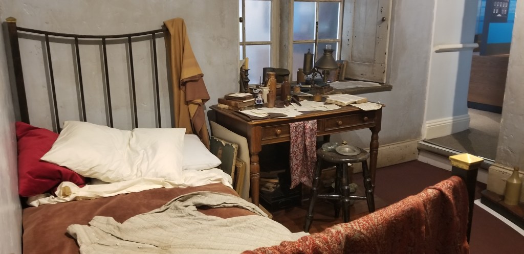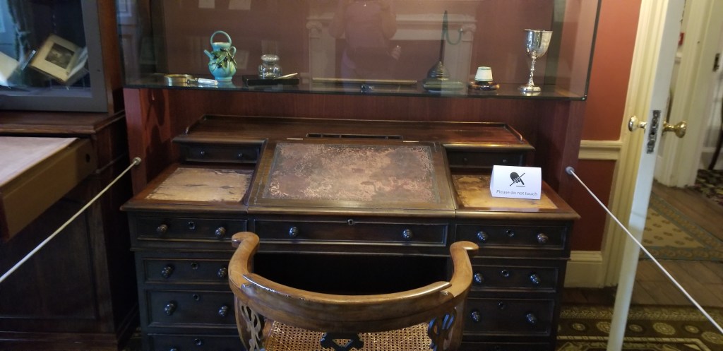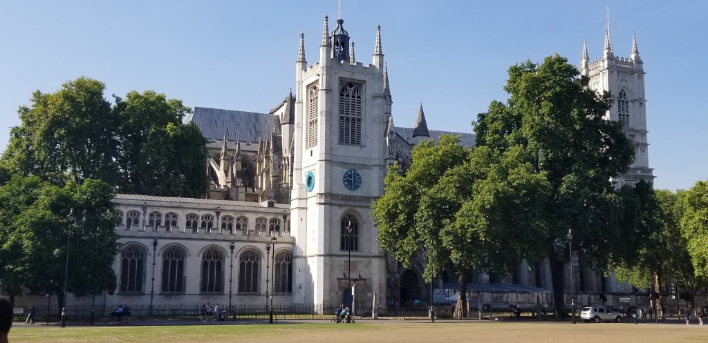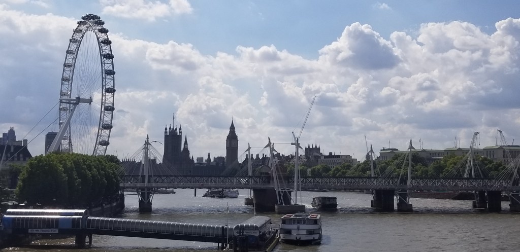 Also from Harry Potter, Platform Nine and Three Quarters is where the Hogwarts students board the train in London. It is a tourist attraction at King’s Cross Station in London, and you can have your picture taken in front of it. Almost noon on a holiday weekend was the worst time to visit – there were people in long lines wrapped around ropes and stanchions for the picture. I was not about to invest my London time in line for the privilege, so this is the best I could get. It would have been fun to pretend I was pushing the luggage cart, though.