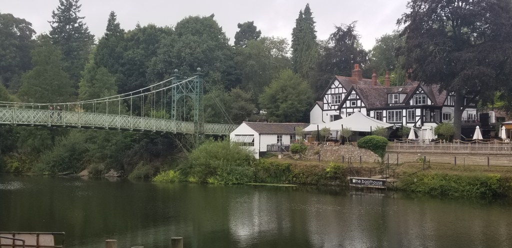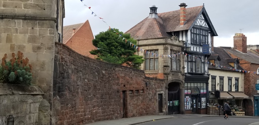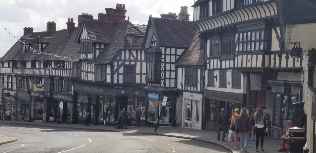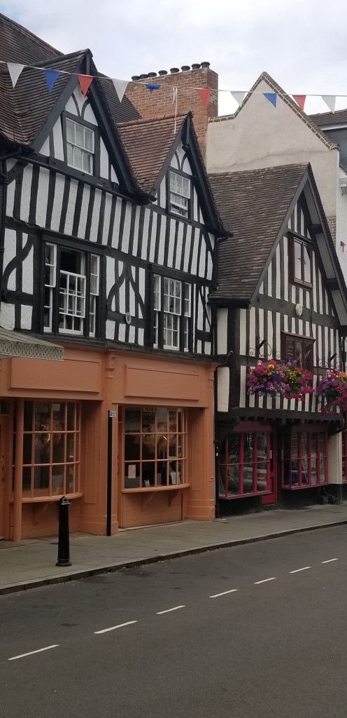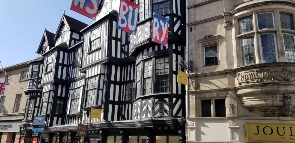 Down to England. When we had a boat ride on the Severn in Shrewsbury, our captain told us that the George C. Scott version of A Christmas Carol was filmed here. The medieval buildings make a perfect backdrop.