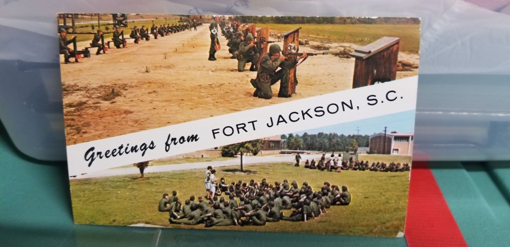 When it was my turn to leave home, I sent post cards home too, like this one from basic training. With the soldiers firing their weapons on the top, I’m sure I was going for shock effect. I’m happy my parents saved it for me.