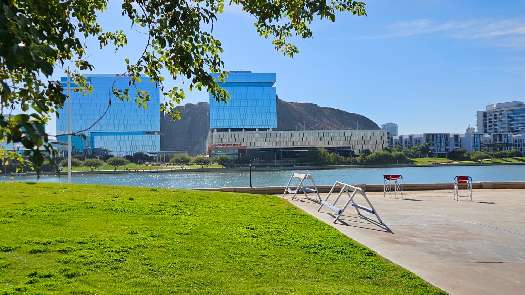 There is also Grand Canyon West, which is a commercial enterprise run by the Havasupai Indian Tribe on their reservation land. About fifteen years ago, they constructed a skywalk out over the Grand Canyon. We’ve been to the South Rim several times, so I thought this might be a different way to go. The distance from our RV at Nellis AFB to Grand Canyon West was 125 miles. Thinking that we might appreciate a little overnight road trip after spending so many weeks in Las Vegas, I booked us into one of their cabins for a night. It was to be our last night in Arizona for the 2024 winter and spring.