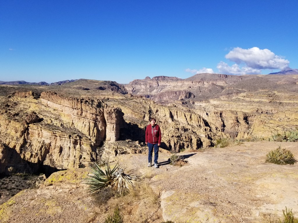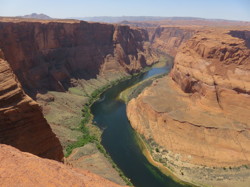 Near Page, we stopped at Horseshoe Bend. The park is run by the city of Page which charges for its huge parking lot; happily, there was room for us. We generally do not make stops on travel days, so I was surprised when Cal turned in. It was just over a half mile walk to the most amazing view: