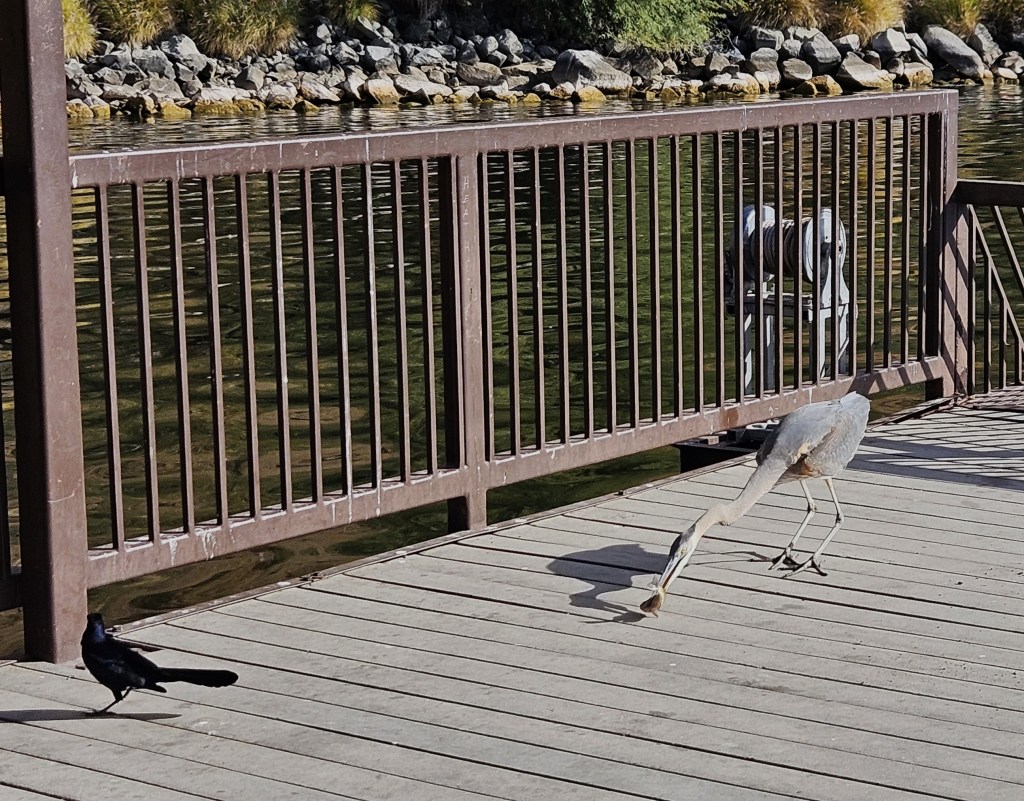Along the dam trail, I enjoy watching the egrets, ducks, and pelicans along the shoreline. In August, flowers begin to bloom.
