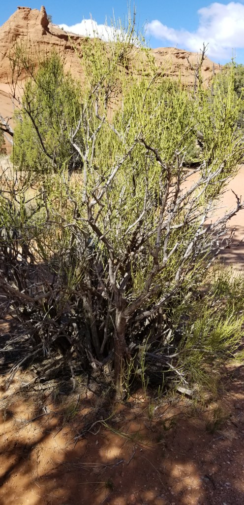 It is called “Mormon Tea”. The leaves and stems were used by native Americans and Mormons as a medicinal brew for all sorts of ailments, and also a substitute for coffee and tea.