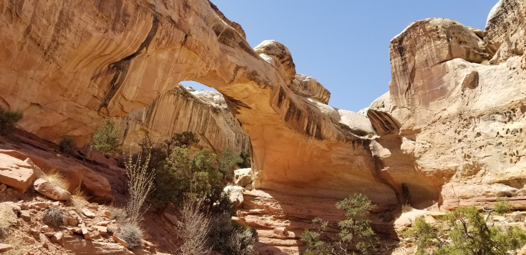 There’s a dichotomy to writing about this park, because not only is there the natural beauty of the Waterpocket Fold, but there is also the history of the people who settled here – the Mormons – who called their village Fruta. Before them were the ancestors of modern day Zuni, Hopi, and Paiute tribes. In this blog I will write about our exploration of the park, and then will cover Fruita in the next.