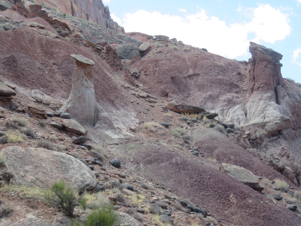 Hoodoos: columns, pinnacles or pillars of rock that have variable thickness and a totem pole shaped appearance.
