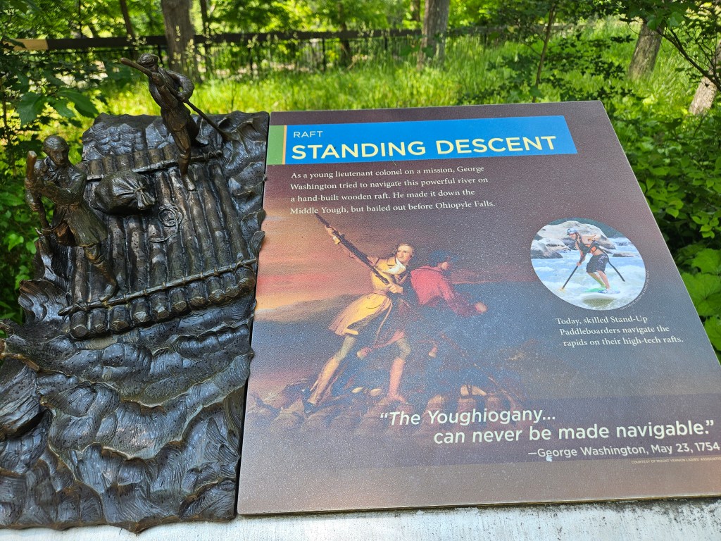 Speaking of the state park visitors center, I really liked the small sculptures that went along with the signboards on the walkway to the building. George Washington declared the Youhiogeny River unnavigable, after trying to get down it on a raft. The sculpture really puts it in perspective.