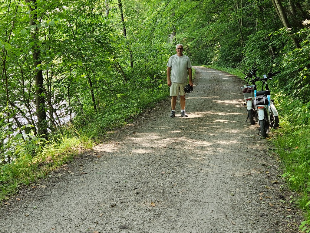 Two days later, when the rain was finally finished, we were at the Brecksville Station. On the park map, it is shown as “Station Road Bridge”, and nearby is the Brecksville Nature Center. We waited hopefully with our bikes…and waited…no train. I finally did what I should’ve done in the beginning, and looked it up online. That’s what everyone really wants you to do in 2025. The train doesn’t run on Tuesdays, the very day we were there.