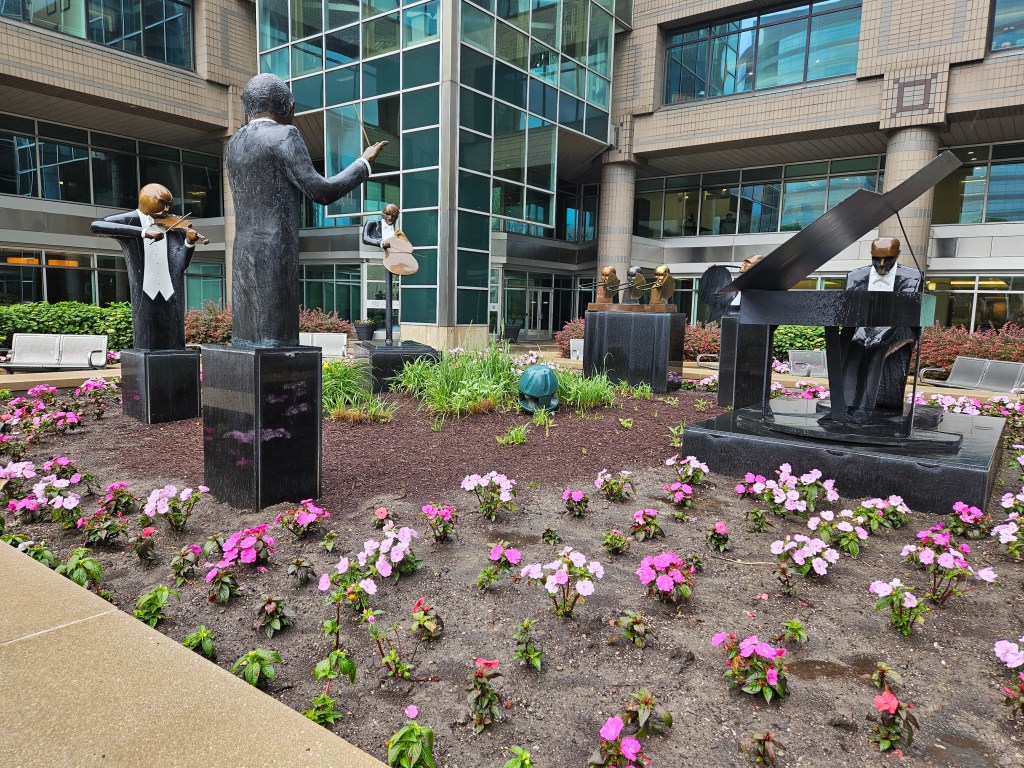 As we stepped out of the museum, the rain was letting up, and we decided to walk into downtown Cleveland for lunch. The Winking Lizard had the best salad I have had in a long time. They called it the Blueberry Salad, but there was more fruit in it than just blueberries, plus feta cheese, and sliced steak that came out sizzling hot. So delicious! On the way to the restaurant, an orchestra was playing: