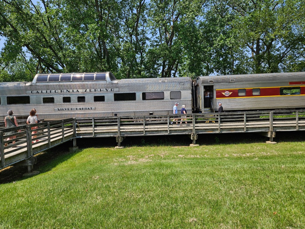 We returned the next day to ride the train. This is not just a cute little excursion train. It is a full size antique passenger train cobbled together from old train cars from across the United States. This is an old resurrected California Zephyr observation car that ran between 1949 and 1970. It had been put behind a passenger train of unknown-to-me origin.