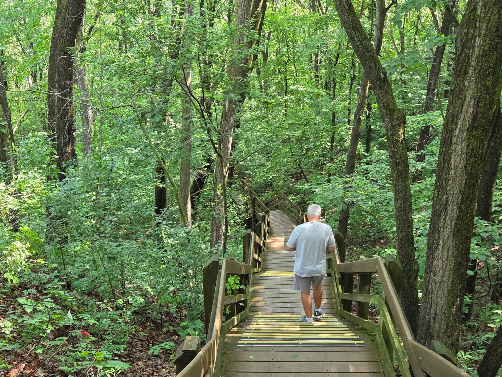The dining building is a restaurant on one side and a fast-food place called the Grill on the other. After lunch at the Grill, we went out for a hike as our room was not yet ready. We chose the Stoll Memorial Trail, seen on the bottom right of the map. After a half hour, Cal declared that he was done and wanted to turn around. The day was warm, the sun was bright, and his hat was in his luggage. I had no thought of turning around and kept going.