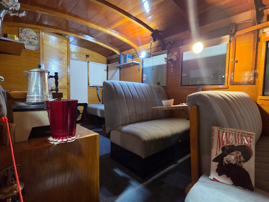 Our seats were in one of the “coach” cars that you see on the right of the picture above. We explored the train–ok, I admit, we were looking for the concession car– and walked through first-class cars that had been lovingly restored to the glamour of the 50’s and 60’s. We rode the train to its northern terminus at Rockside, and then back down to where our truck was sitting in Peninsula. If we’d had our bikes, the porters would have put them in the baggage car and taken them down again for us.