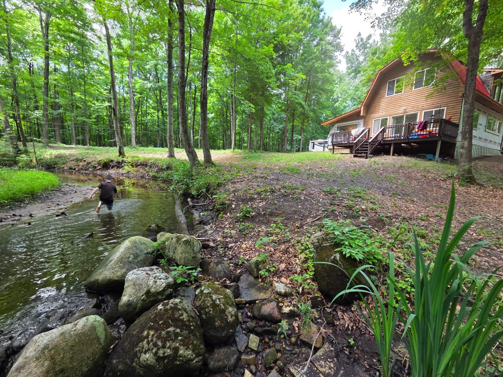 A picture like this first drew me to the house. The steps go right down into the stream from the living room! I can imagine sitting on those steps in the morning with a hot cup of tea, or dipping my toes in the stream on a hot day. That is also a spring-fed pool on the right.
