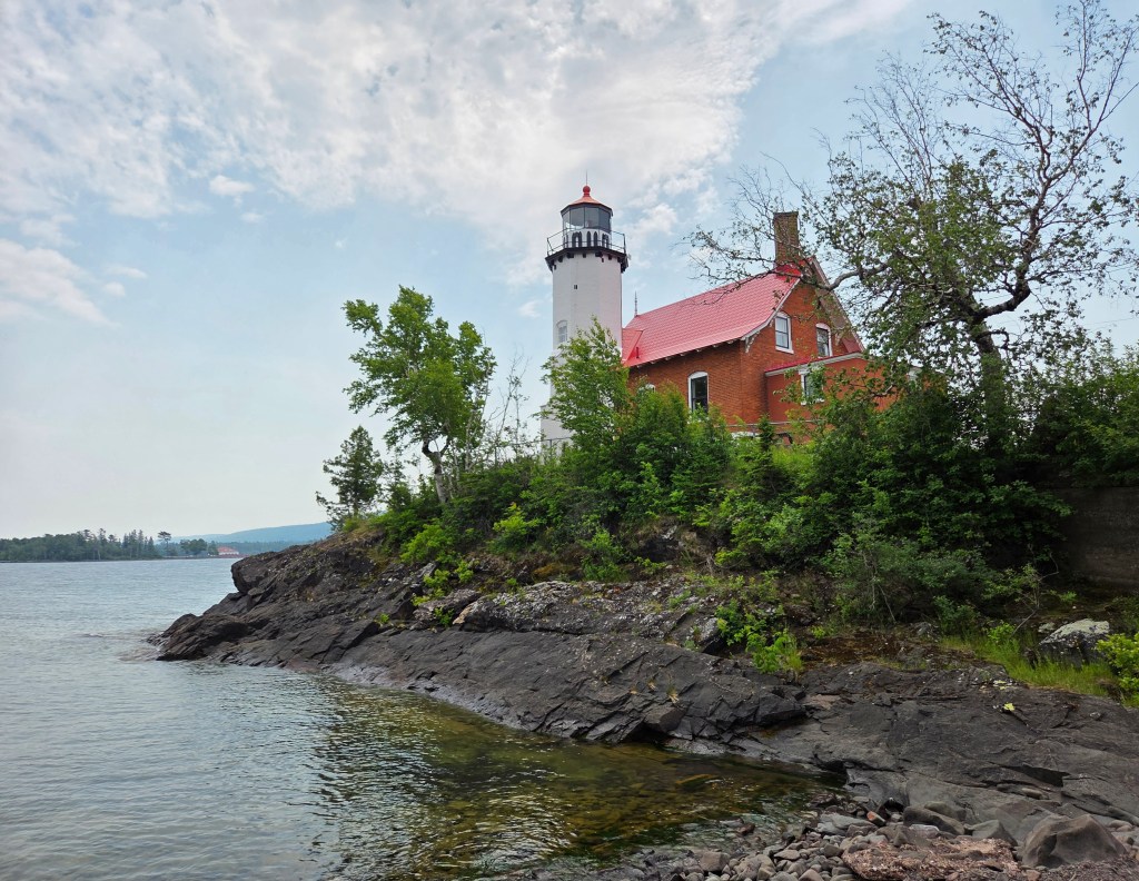 There’s not a lot to see from the boat. We could see the Keweenaw Peninsula for a long time off in the distance. For an interval of time there was just water. Lake Superior is the largest of all the Great Lakes and the largest freshwater lake in the world by surface area at 31,700 square miles. It also holds 3 quadrillion gallons of water, enough to cover North and South America with a foot of water. There have been over 350 shipwrecks on the lake, and its cold water has preserved them for divers. The number of shipwrecks is why there are so many lighthouses.