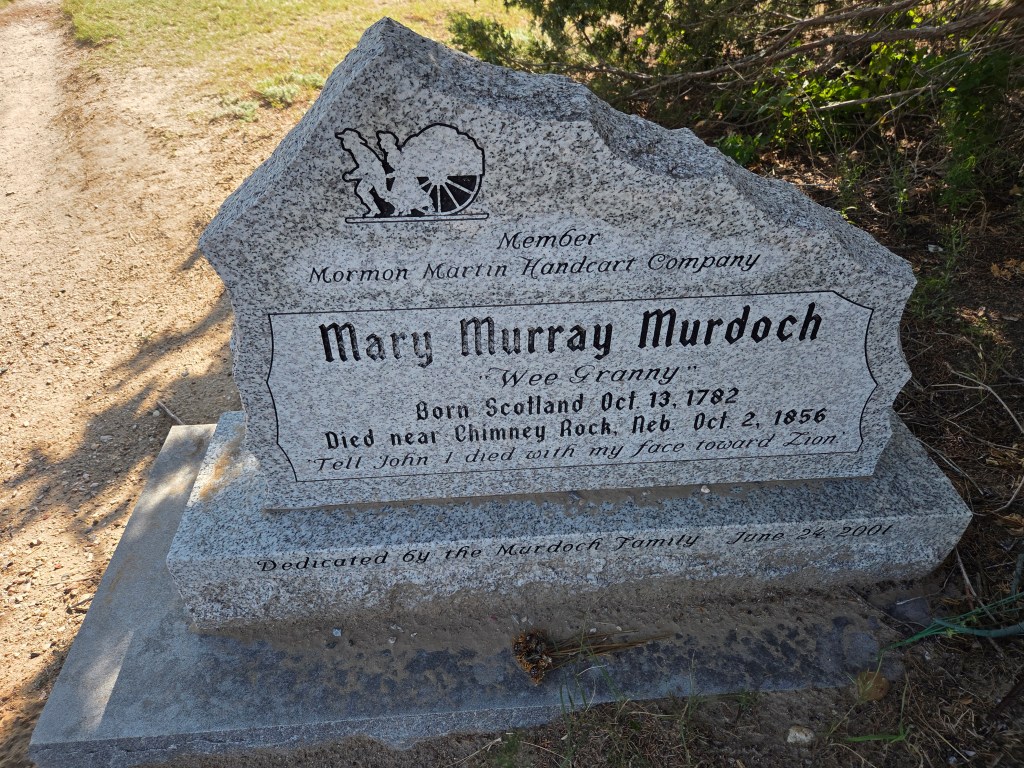 Mary’s son John converted to the Mormon faith in the United States, returned to Scotland, and converted the rest of his family. Mary, whose husband had already died in a mining accident, made the trip from Scotland at age 67 to join her son and his family in Utah. She died in her sleep, though, and is buried somewhere out on the trail. She was part of a group of Mormon immigrants who were pushing carts on the trail for lack of wagons.